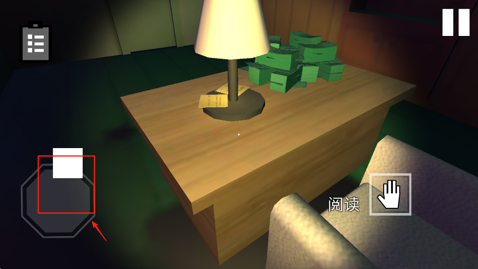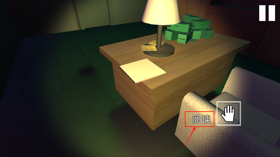 3、游戏中的线索和提示通常隐藏在纸条中,点击“阅读”按钮查看桌上的纸条内容。