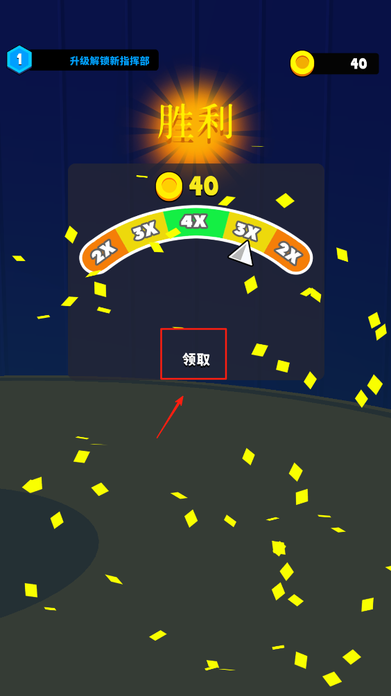 3、游戏胜利后,点击“领取”按钮,获取游戏奖励和金币。