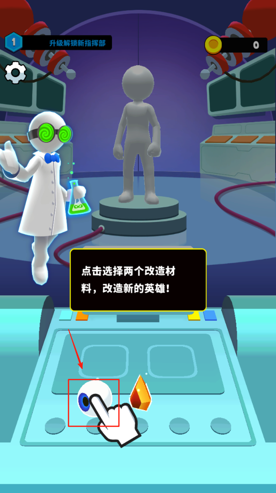 1、点击选择两个改造材料,开始制造新的英雄角色。