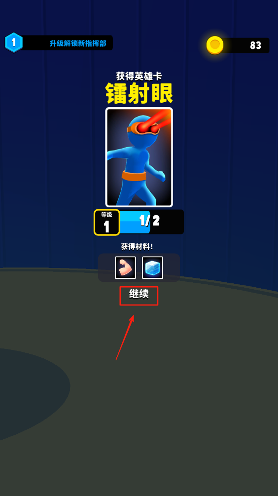 4、获得新英雄后,点击“继续”按钮,使用新英雄进行下一关的挑战。