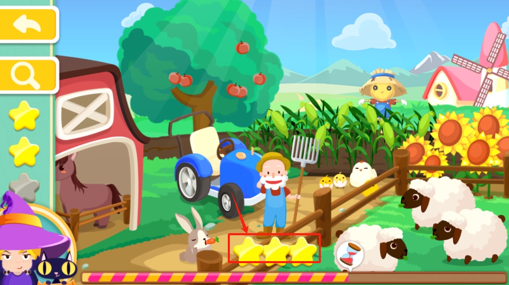 3、角色扮演互动:完成关卡后,孩子可装扮成小巫师修复混乱场景,通过拖拽操作将物品归位,深化理解能力。