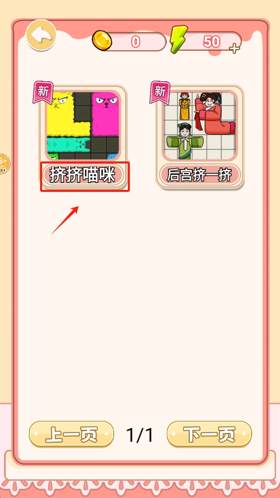 2、在关卡选择界面,点击想要挑战的关卡,例如“挤挤喵咪”。
