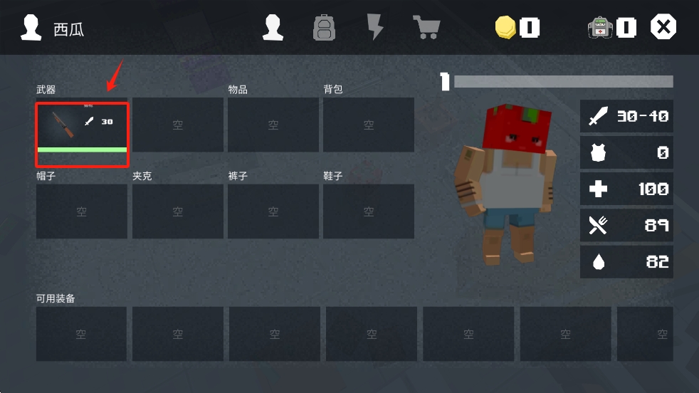 1、在角色装备界面,点击选择你的初始武器进行装备。