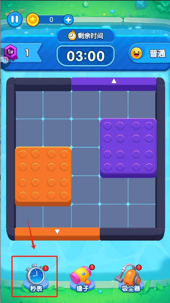4、点击锤子图标,花费金币使用锤子移除游戏方块,帮助通关。