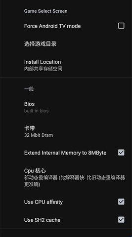 2、提供卡带声音设置、BIOS 模式切换、CPU 核心性能调整、跳帧控制及分辨率渲染等功能。