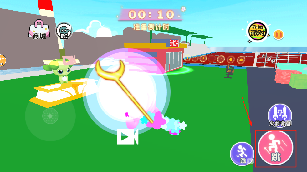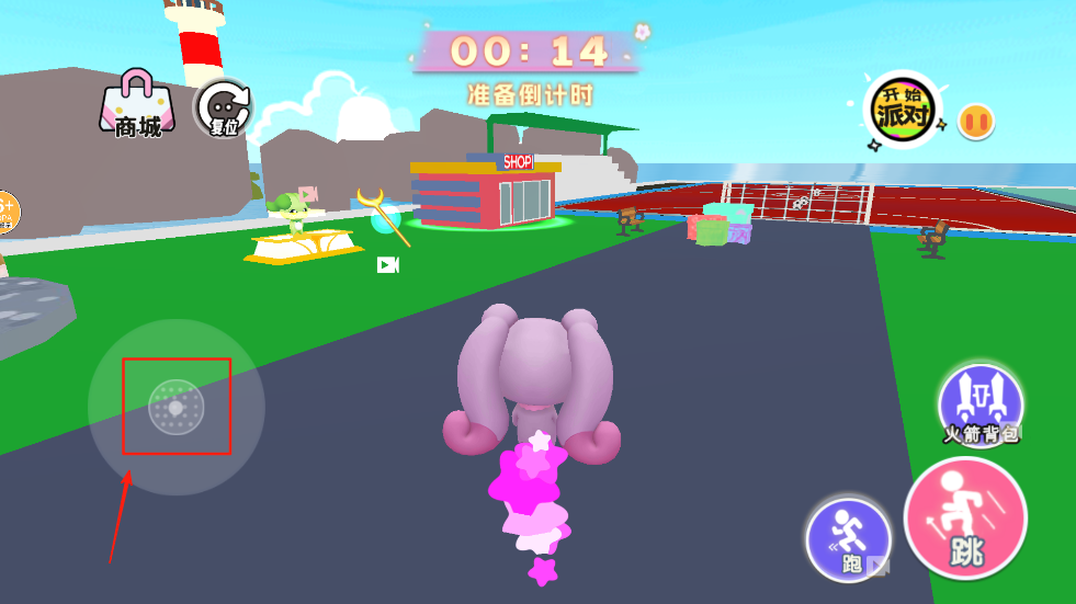 2、准备战斗,在准备倒计时中,熟悉虚拟摇杆和跳跃按钮的操作方式。