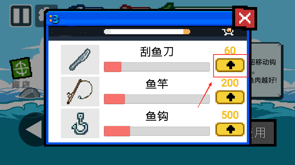 4、在商店购买钓鱼装备,如鱼竿和鱼钩,以提高钓鱼效率和收获。