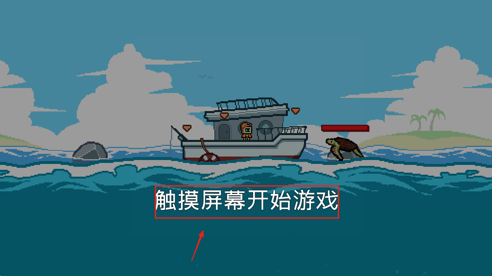 2、触摸屏幕开始游戏,控制角色在船上移动,寻找最佳钓鱼点。