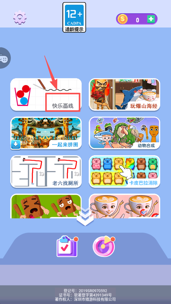 1、选择游戏模式,点击“快乐画线”图标,进入游戏开始你的绘画挑战。