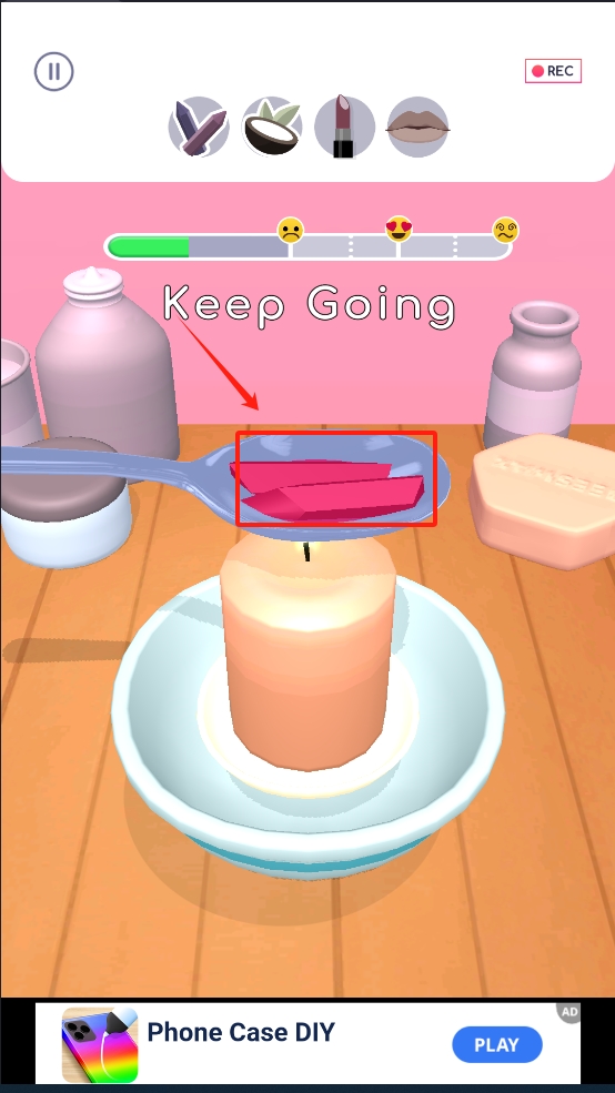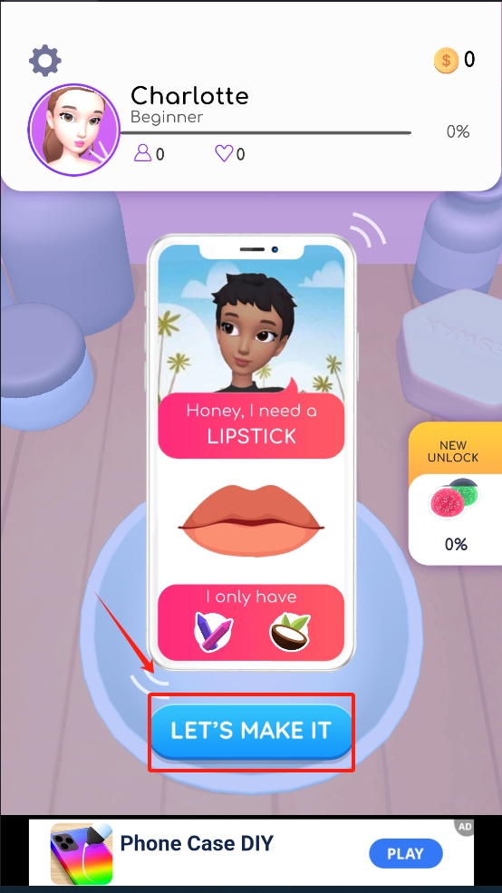 1、点击“LET'S MAKE IT”按钮,开始制作口红的过程。