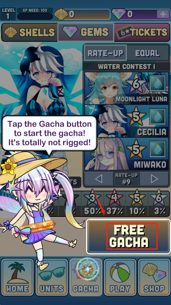 2、角色收集乐趣:超140名造型迥异的角色库,从俏皮双马尾到高冷御姐均配备专属泳装,6星稀有角色通过贝壳抽奖机制获取。