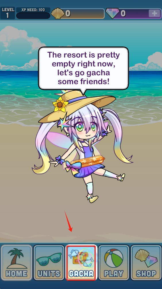2、在游戏主界面,点击下方的“GACHA”按钮,进入角色收集界面。