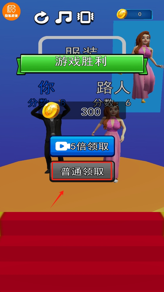 4、游戏胜利后,选择“普通领取”来获取奖励。