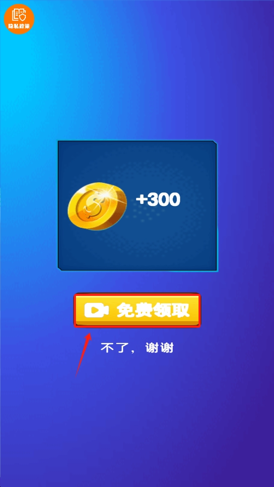 2、点击“免费领取”按钮,获取额外的300金币奖励。