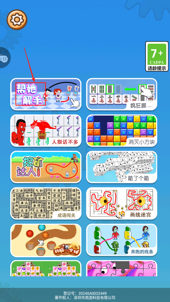 1、在游戏主界面,点击“帮她解手”等游戏图标,选择你想要进行的游戏模式。