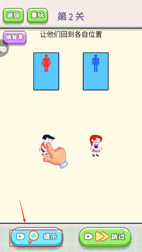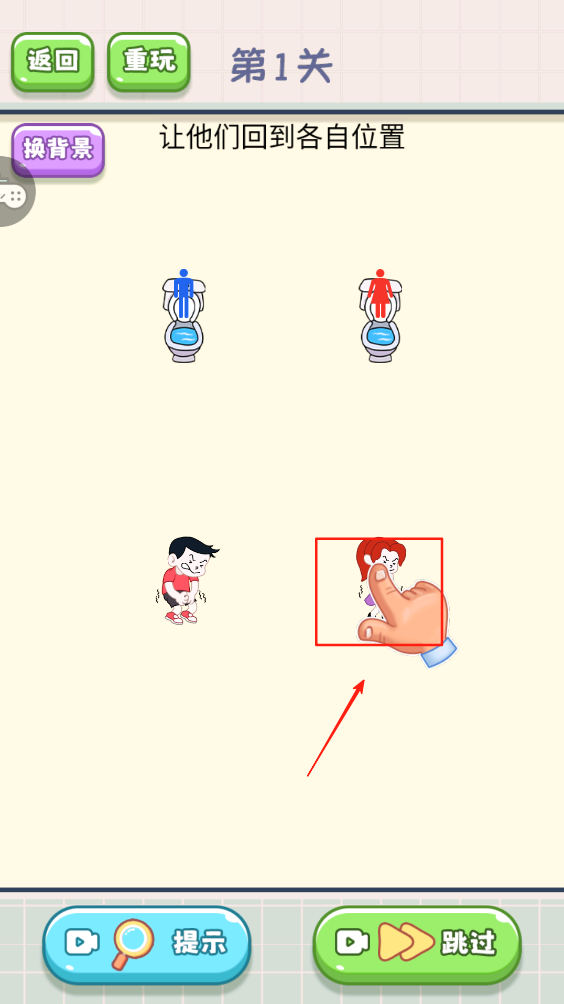 2、在游戏关卡界面,阅读上方的指示,如“让他们回到各自位置”,理解游戏目标。