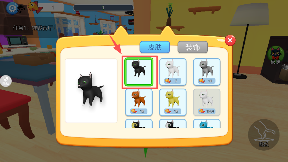 4、在商店中选择并购买皮肤,个性化你的小猫角色。
