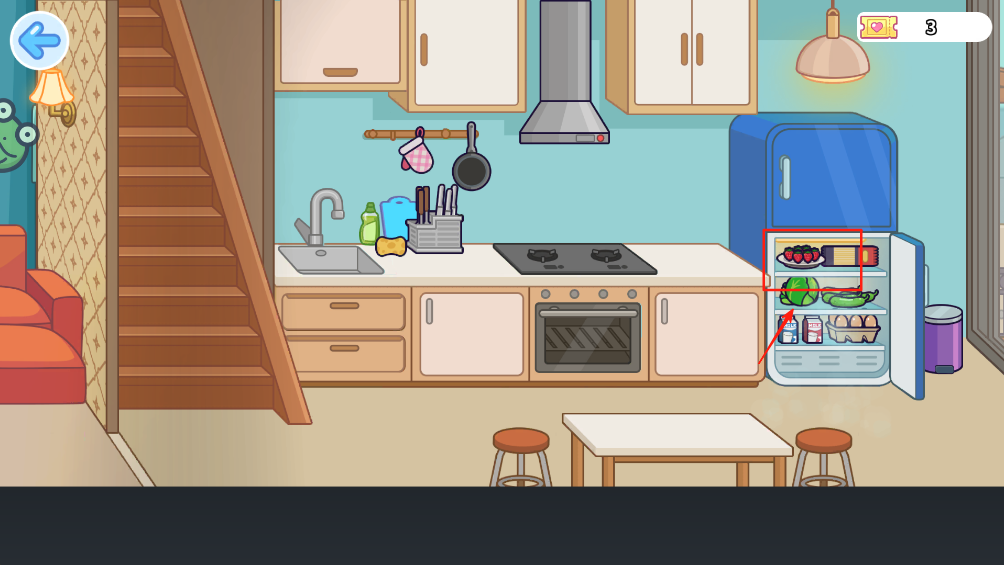 4、在厨房场景中,点击冰箱获取食材,开始烹饪活动。