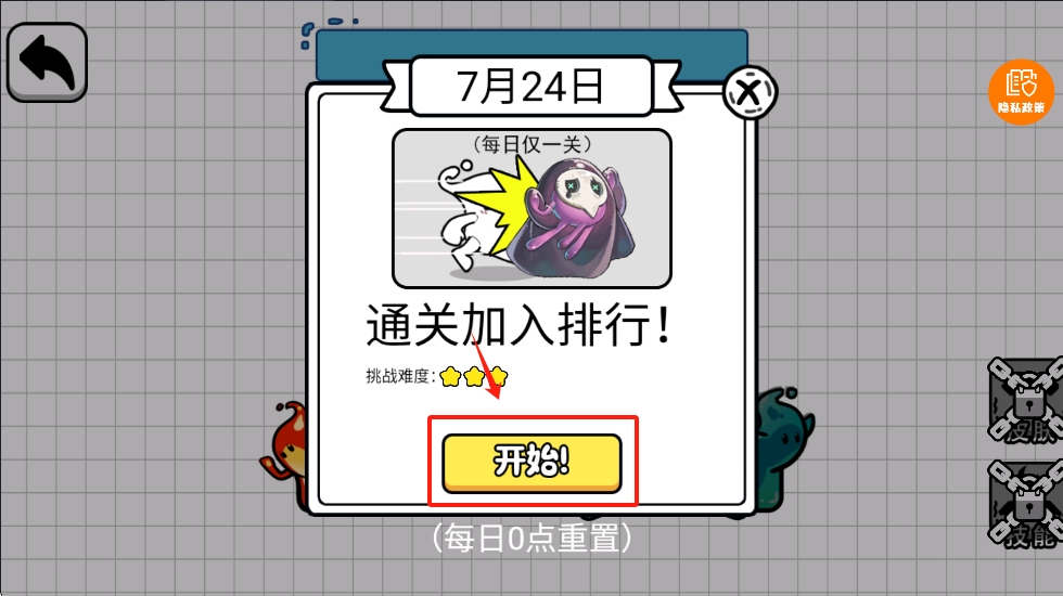 3、在每日挑战界面,点击“开始!”按钮,进入当天的挑战关卡。