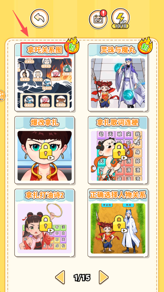 2、在主界面上,点击“拿吒关系图”关卡,选择你想要挑战的关卡。