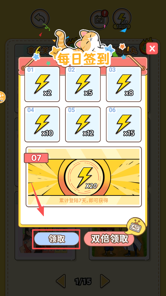 3、点击右上角的“每日签到”按钮,领取你的每日奖励奖励。
