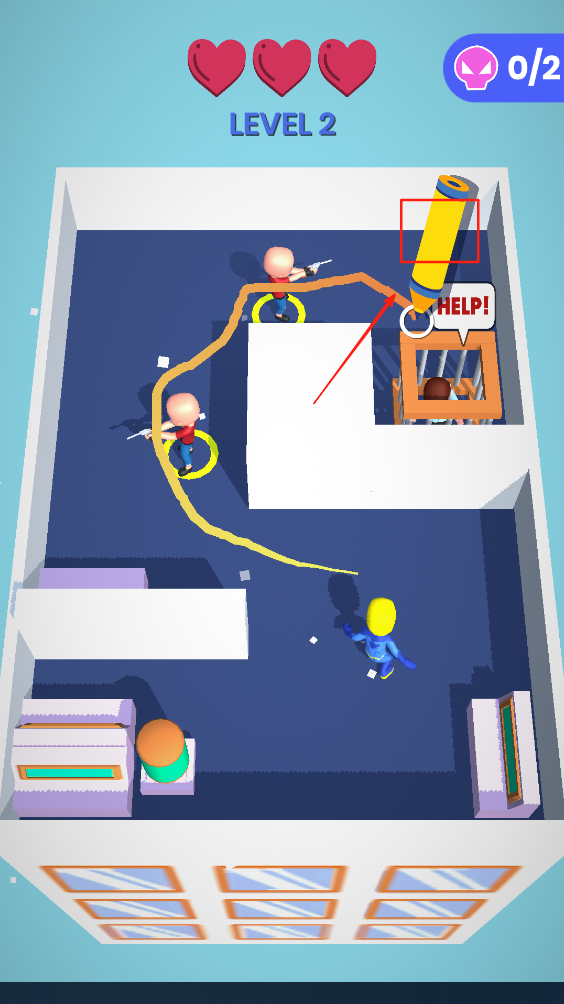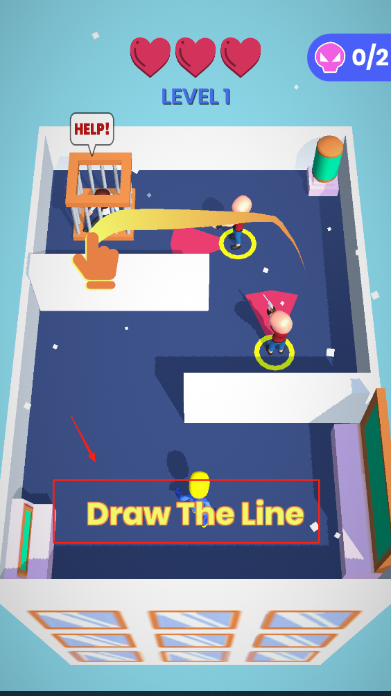 1、点击屏幕上的“Draw The Line”按钮,开始绘制线条,引导角色到达安全区域。