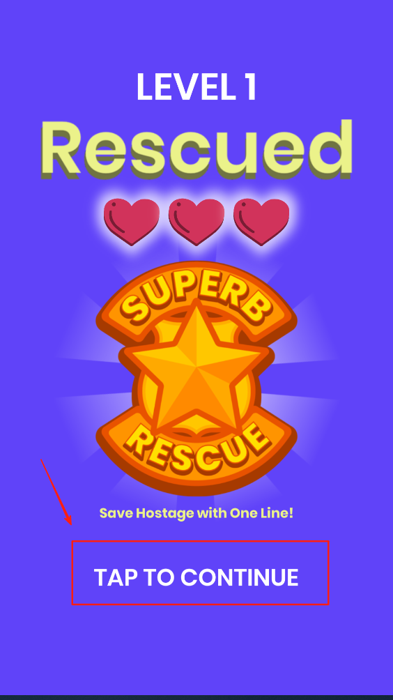 2、完成绘制后,点击“TAP TO CONTINUE”按钮,继续下一关或查看结果。