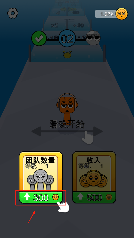3、可以通过点击按钮增加团队数量或提高收入等级,以获得更多金币。