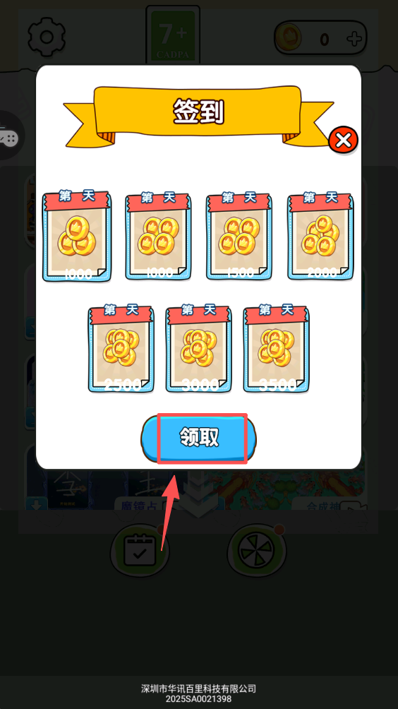 2、点击签到按钮,查看并领取每日签到奖励,连续签到可获得更多金币奖励。