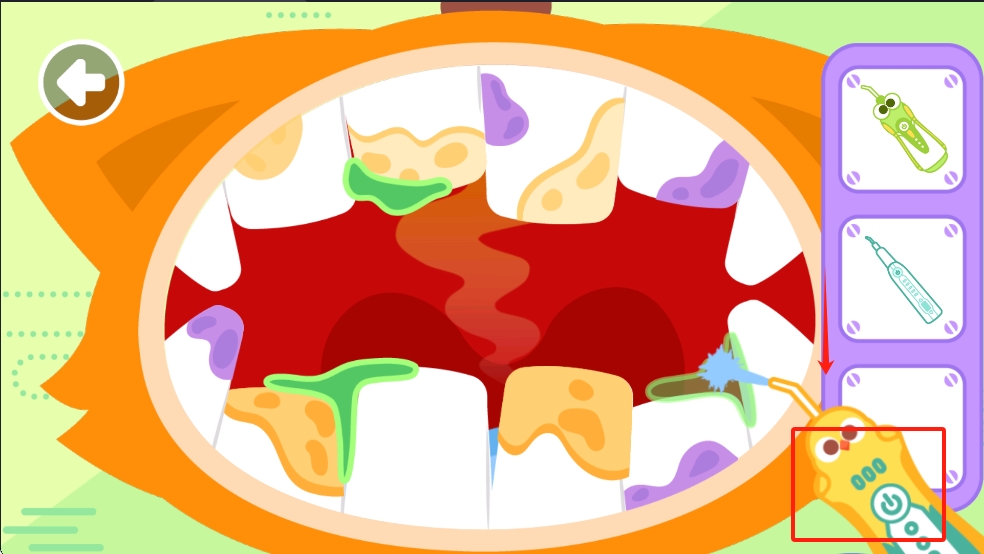 3、使用工具清除动物牙齿上的污渍,完成治疗任务。