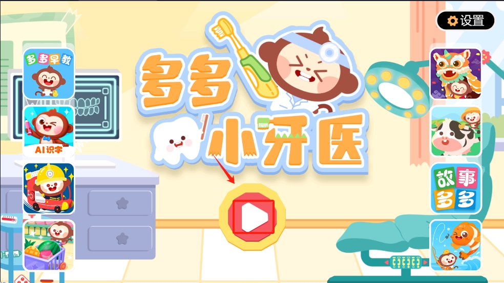 1、进入“多多小牙医”游戏,点击播放按钮开始游戏。