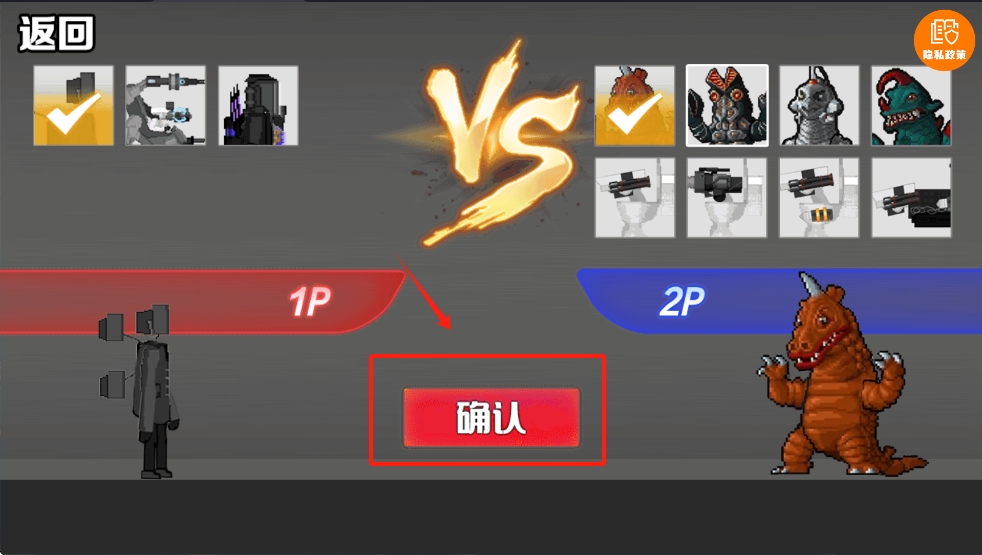 3、选择你的角色和对手,点击“确认”按钮开始对战,准备你的战斗策略。