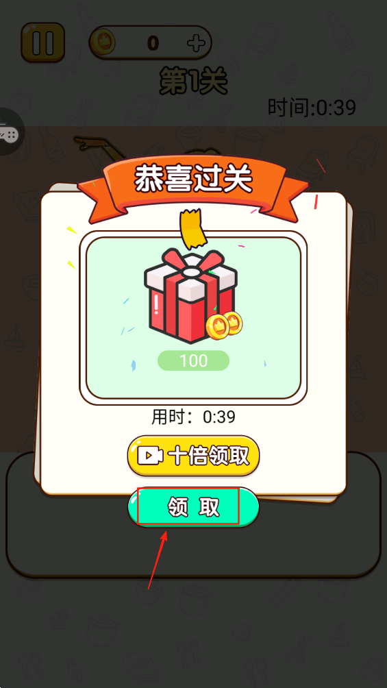 4、完成关卡后,点击“领取”按钮获取奖励,继续下一关的挑战。