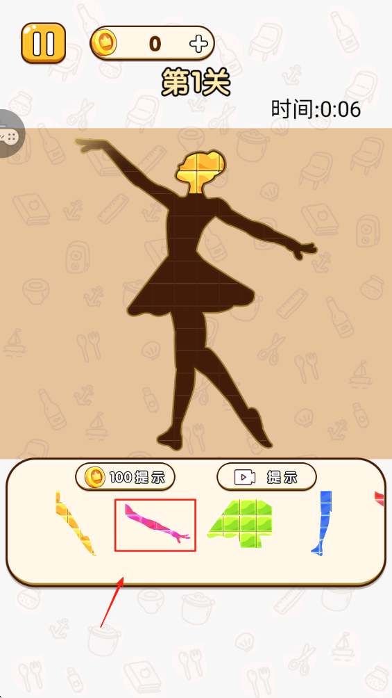 2、在关卡中,观察轮廓并从下方选择正确的拼图块,拖动到正确的位置。