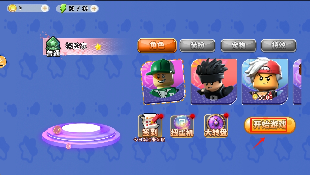 1、进入游戏主界面,选择“开始游戏”按钮,进入游戏模式选择页面。