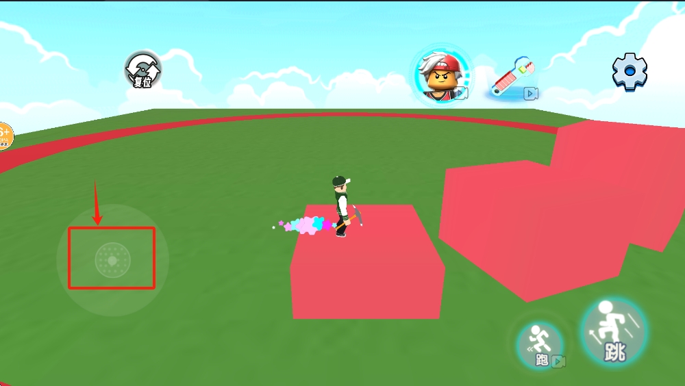 3、进入游戏后,点击左下角的摇杆图标,控制角色移动。