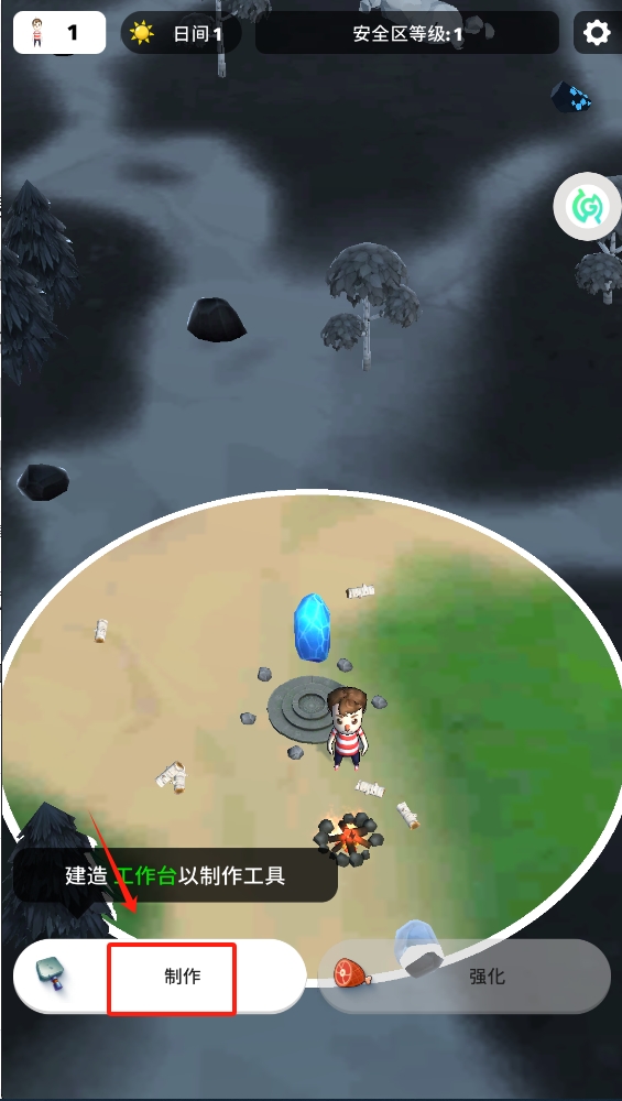 1、首先,点击制作按钮开始建造工作台,这是生存的基础。