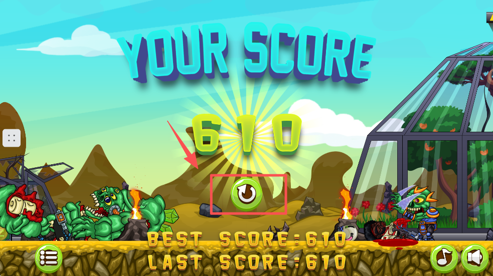 4、游戏结束后,点击绿色播放按钮,重新开始。
