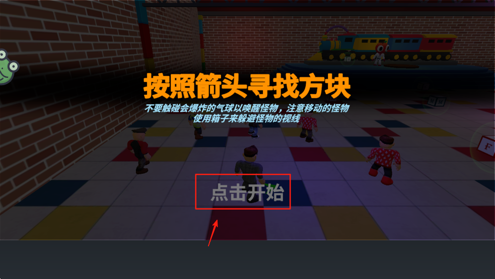 4、在关卡界面点击“点击开始”,根据提示开始游戏并寻找方块。