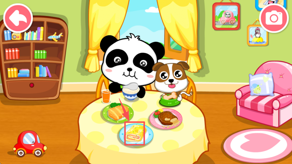 3、然后,在游戏场景中,找到需要上色的物体,如食物或玩具,点击选择并开始涂色。