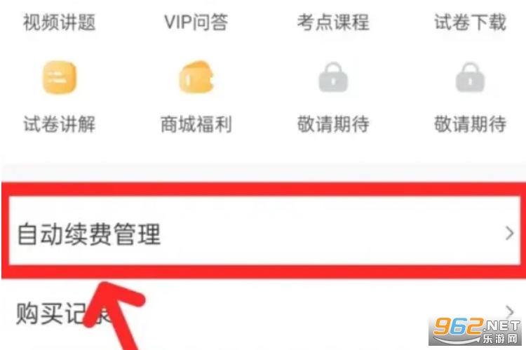 2、在【作业帮会员】页面,点击【自动续费管理】选项。