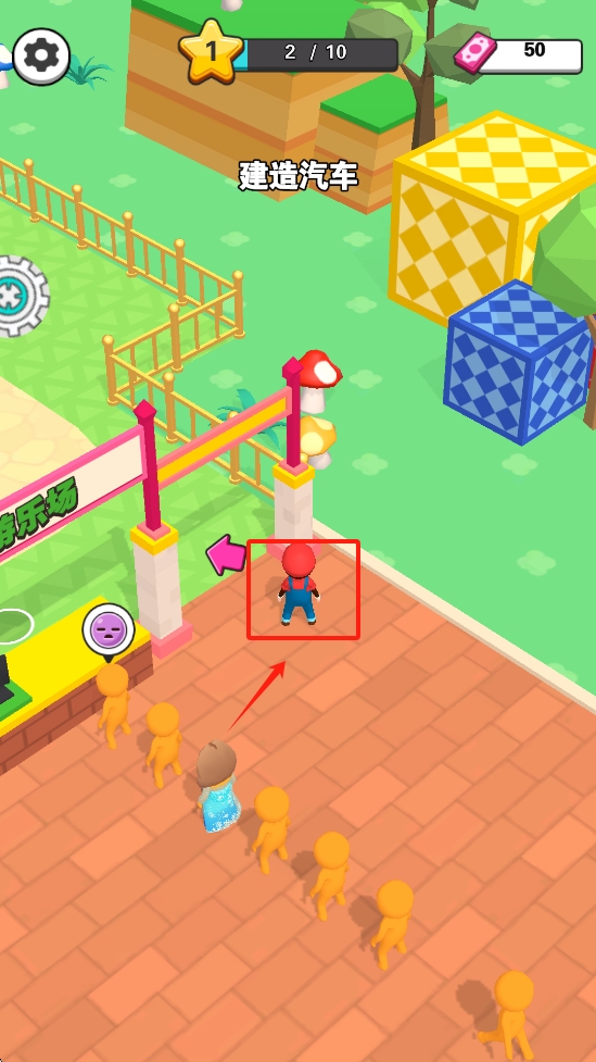 2、点击地面上的资源图标,收集建造所需的材料和金币。