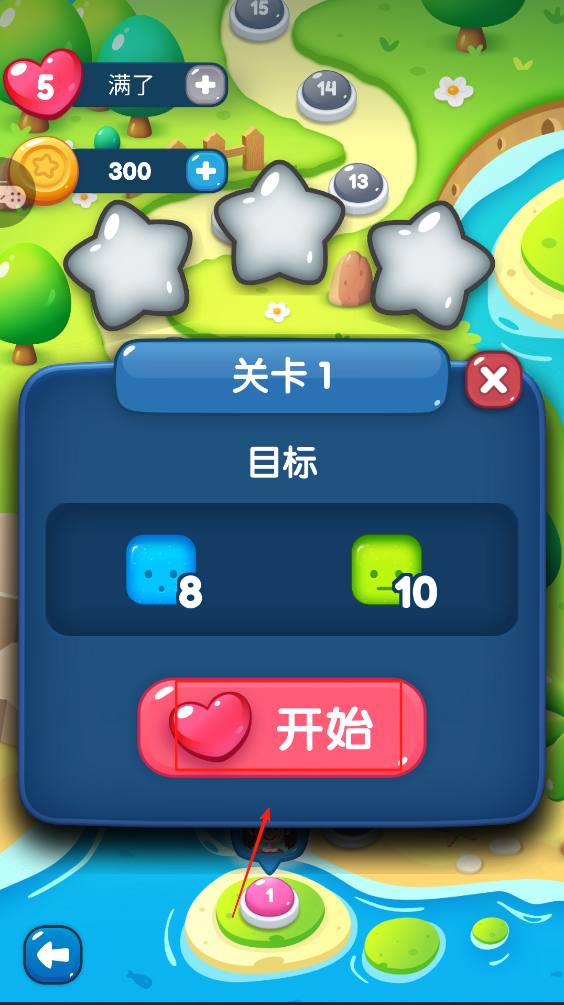 1、点击绿色的“开始游戏”按钮,即可进入游戏并开始你的消除挑战。