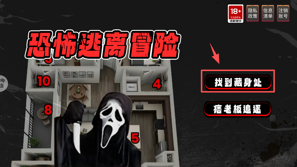 1、在关卡地图上选择一个安全的藏身处,点击以躲避恐怖的追逐。