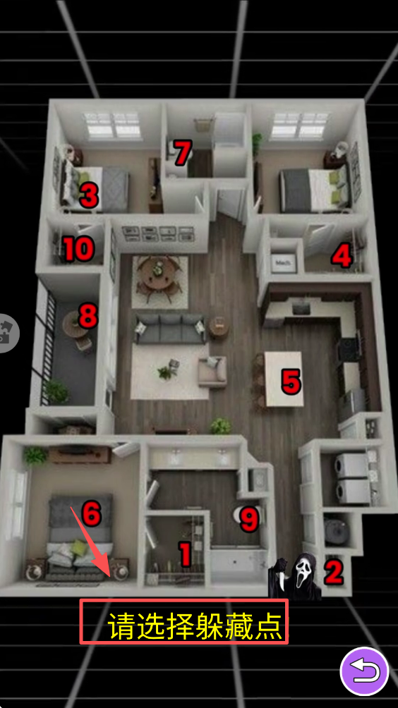 4、在房间内找到合适的躲藏点,点击选择,确保在恐怖追逐中保持安全。