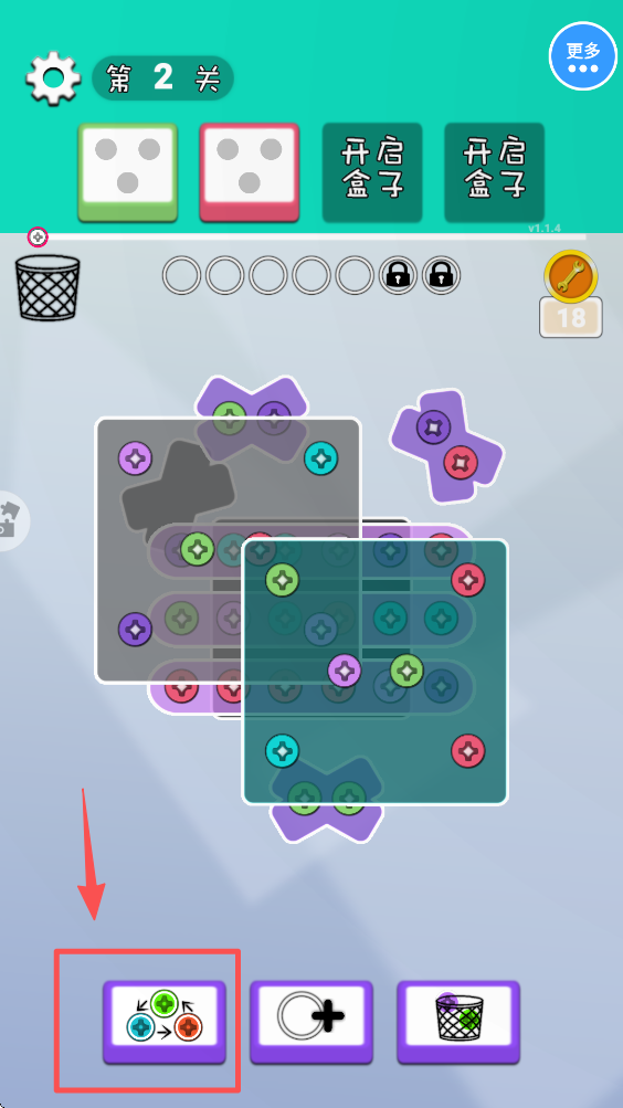 2、每一关开始前需观察螺丝排列和颜色分布,合理运用空格位置,避免后期无法移动,考验玩家的前瞻性和规划能力。