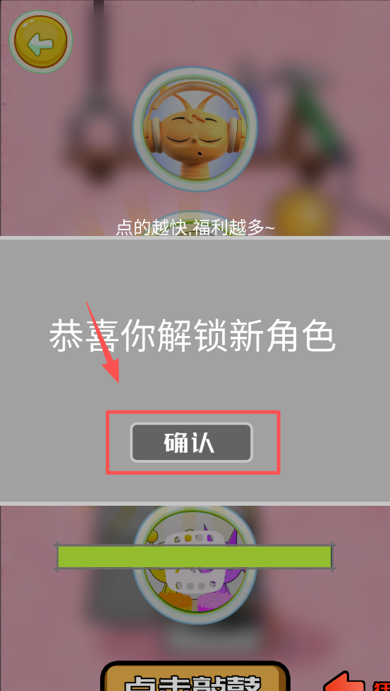 4、解锁新角色后,点击“确认”按钮,领取你的新角色并继续游戏。