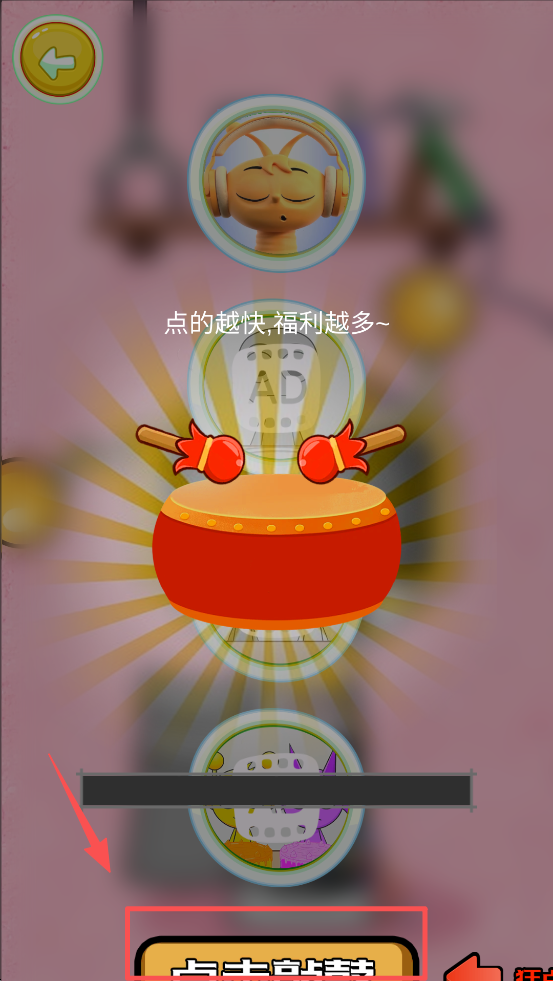 3、进入游戏后,快速点击转盘上的耳机图标,点得越快,获得的福利越多。