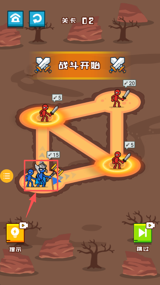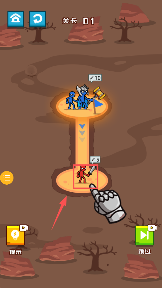 2、在关卡中,点击角色并拖动到敌人上方进行攻击。
