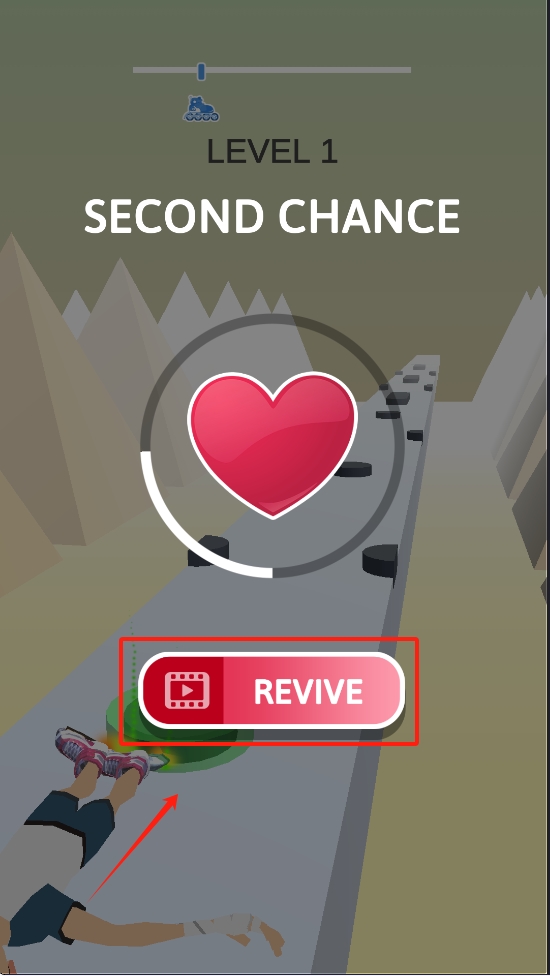 3、如果角色摔倒,点击“REVIVE”按钮可以复活角色,继续游戏。